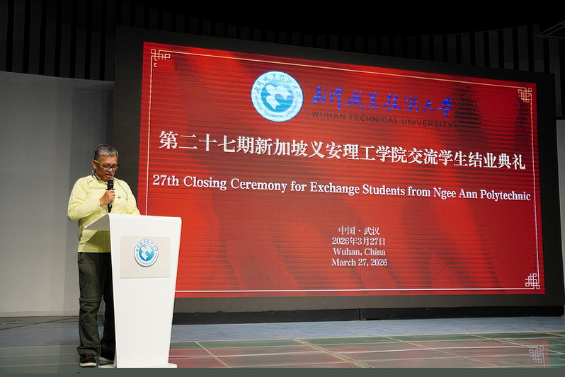 武汉职业技术大学副校长杨旭东在新加坡义安理工学院交流学生结业典礼上致辞